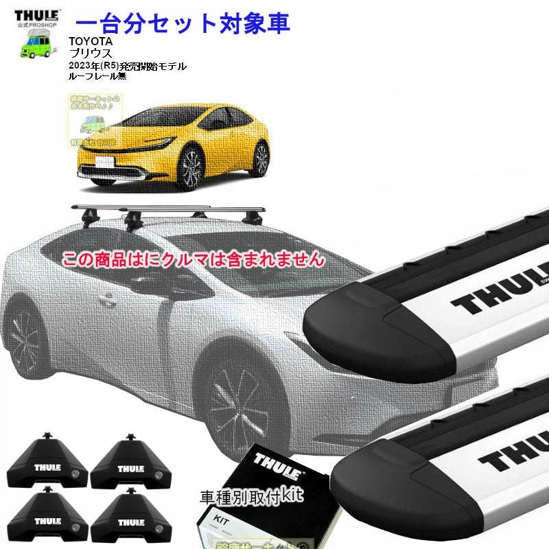 トヨタ プリウス XVW6#系 ルーフレール無 th7105 th7114 kit145367 ( kit5367 ) Thule Evo WingBar-1台分set