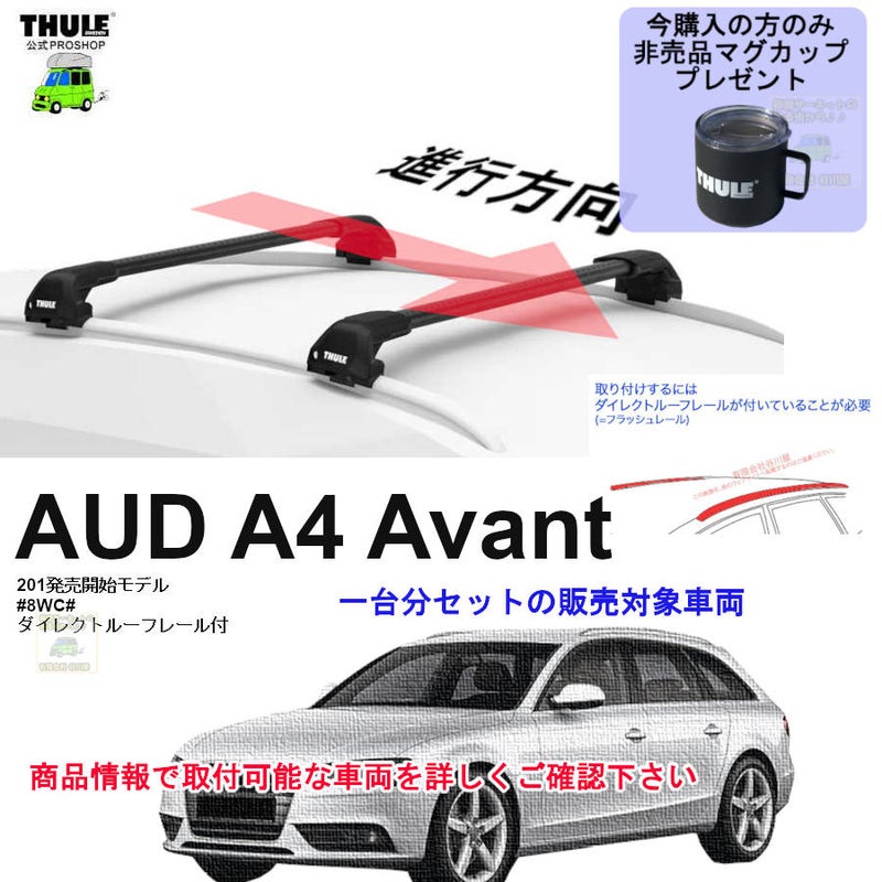th7206とTHULE EvoEdge 2/6店在庫あり アウディ A4 アバント:ダイレクトルーフ付 8WC#系 th720600 th7214B th7213B kit186019 ( kit6019 ) Thule ブラックEvoEdge set マグカッププレゼント対象品