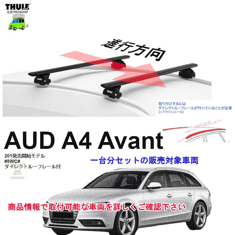 th7106とTHULE Evo アウディ A4 アバント 8WC#系 ダイレクトルーフレール付 th7106 th7112B kit186019 ( kit6019 ) Thule Evo WingBarBlack-1台分set