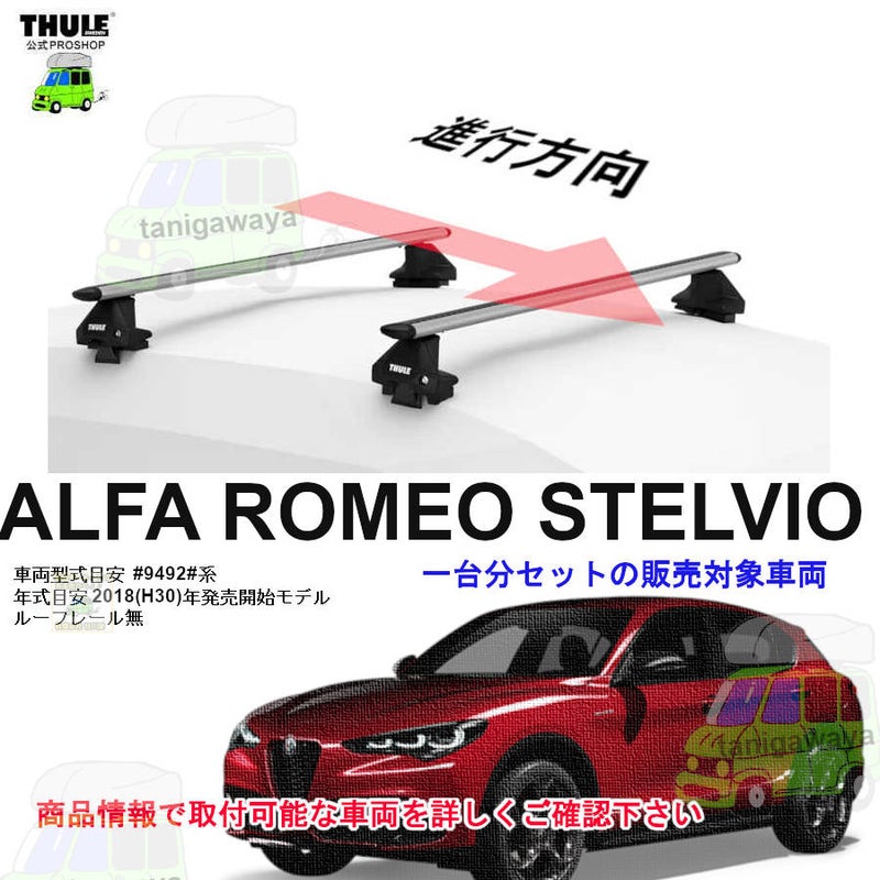 アルファロメオ ステルヴィオ ルーフレール無 th7105 th7114 kit145156 ( kit5156 ) Thule Evo WingBar-1台分set