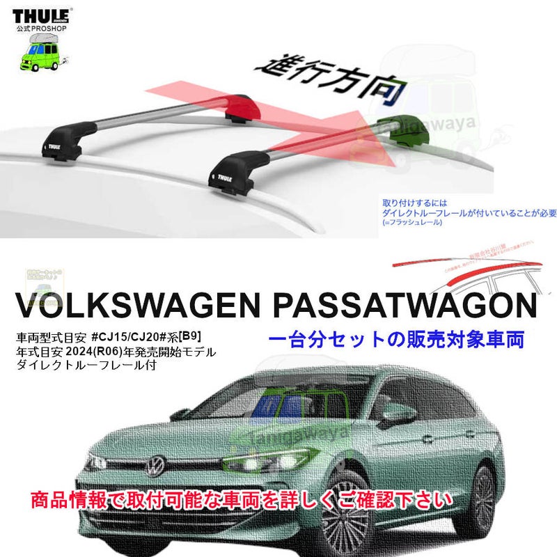 th7206とTHULE EvoEdge VW パサート #CJ20V# #CJ15V#系 ワゴン[B9] ダイレクトルーフレール付 th720600 th7213x2本 kit186194 ( kit6194 ) Thule EvoEdge set