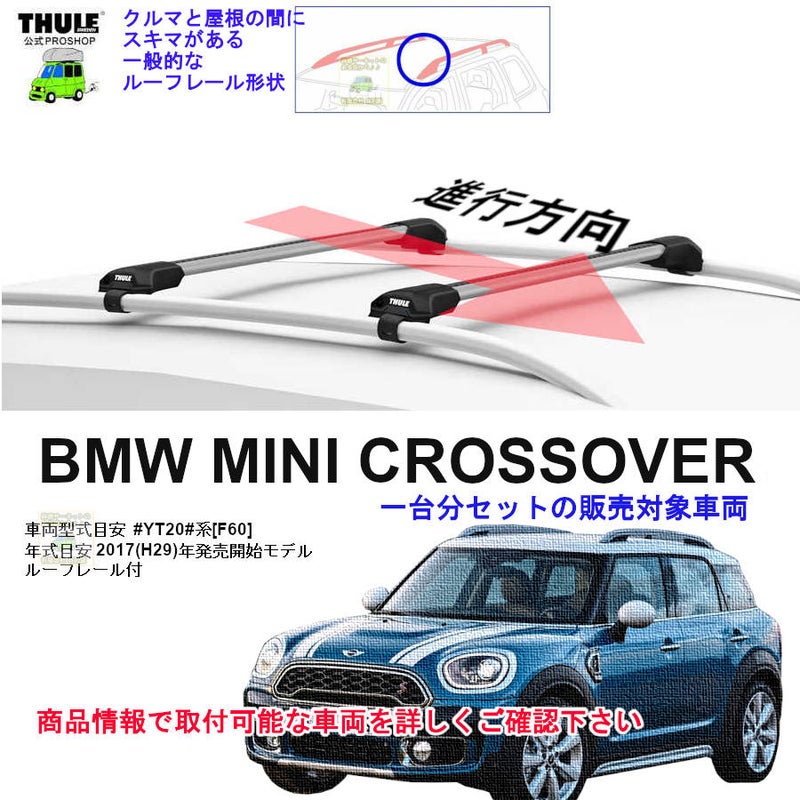 THULE EvoEdge7204系 3/4店在庫あり即納 BMW:MINI:[F60] クロスオーバー ルーフレール付:YT20 th7204 th7212x2本 Thule EvoEdge1台分set