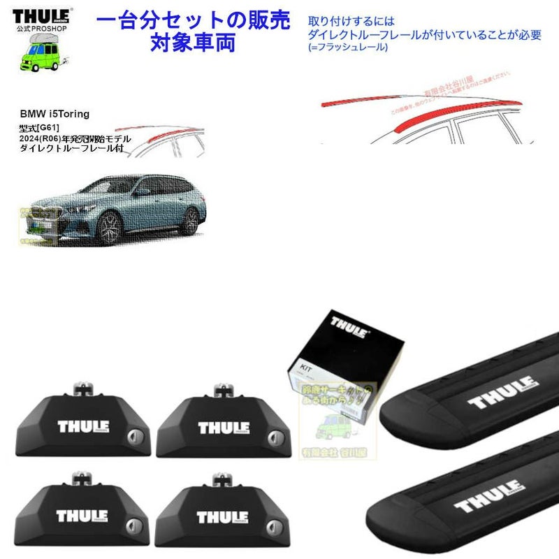 th7106とTHULE Evo BMW i5 [G61]ツーリング ダイレクトルーフレール付 th7106 th7113B kit186193 ( kit6193 ) Thule Evo WingBarBlack-1台分set