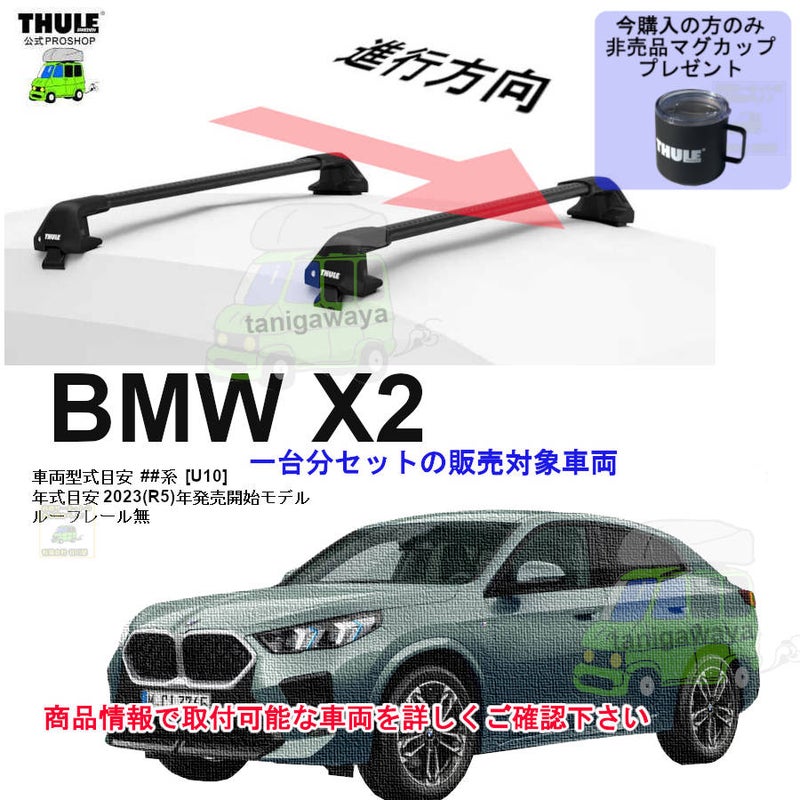 次回入荷未定分 BMW X2 [U10] ルーフレール無 th720500 th7215Bx2本 kit145395 ( kit5395 ) Thule ブラックEvoEdge set マグカッププレゼント対象品